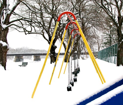 photo miscellanea » looking eastward from a swingset in Riverside Park toward the CSX trestle over the Mohawk – Schenectady NY – 27Feb2011
