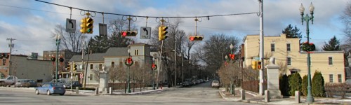 photo miscellanea » entryway to the Schenectady Stockade at Erie Blvd and Union St. with Gillette House in middle