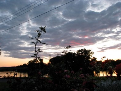 Back on Planting Day at Riverside Park (May 16, 2009), Gloria Kishton broke away from the crowd working on the main flowerbeds near Washington Avenue (see our posting for details and photos). Instead, Gloria tended to needed trimming, weeding and planting around and atop the two large planters situated along the paved path located at the end of Governor’s Lane. Last Sunday, July 19, 2009, I stopped to admire the fruits of Gloria’s handiwork, and decided to feature the planters in a sunset posting here at suns along the Mohawk — as we did this year with tulips and daylilies.