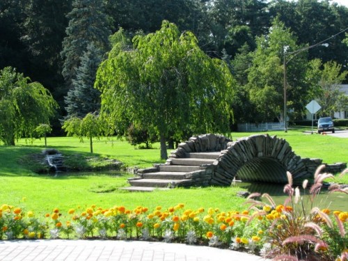 view of the Rose Garden arched bridge – Schenectady Central Park 03AUg09