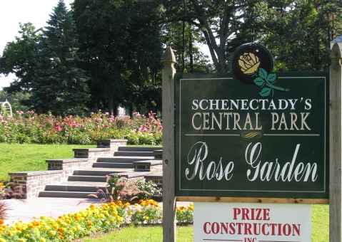 entry sign – Central Park Rose Garden, Schenectady, NY – along new stairway