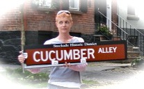 looking for signs (historic anticipation) » Cucumber Alley Sign held by Beth Petta – 10Sep09