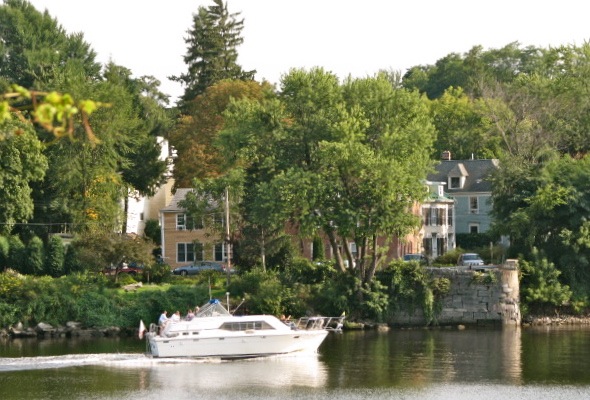 Stockade views from Scotia’s Washington Avenue » boat passing the Stockade Burr Bridge abutment – 07Sep09