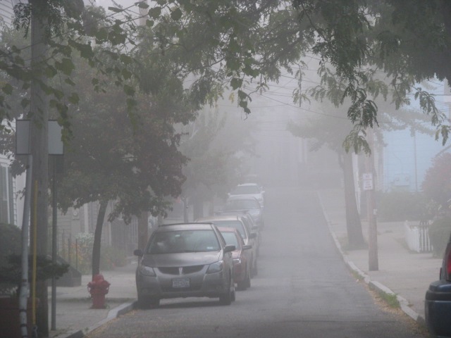 Mohawk mist on the last full day of summer » foggy North St viewed from the RIverside Park tot lot -7 AM 21Sep09