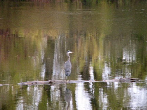 – Blue Heron floats past the Isle of the Cayugas, Saturday afternoon, Oct. 24, 2009 –