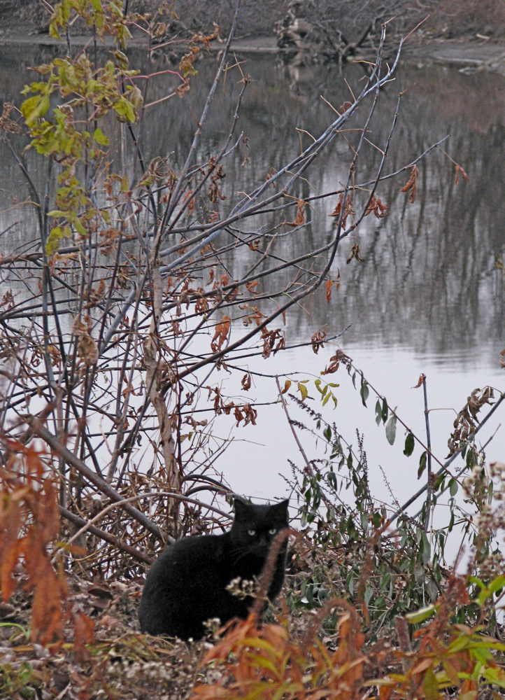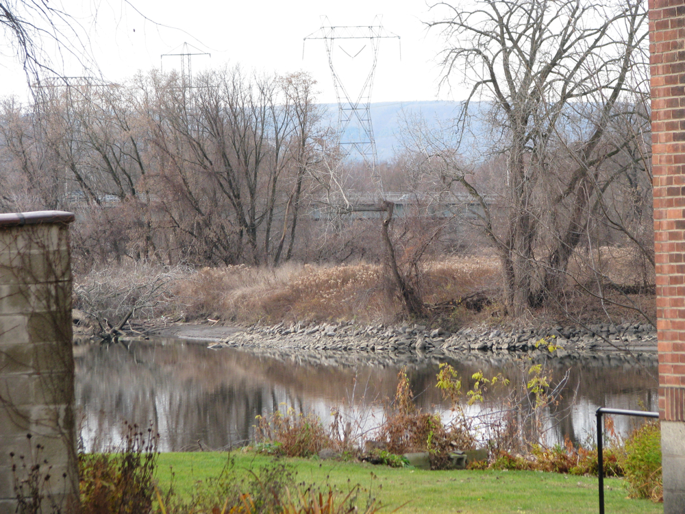 In addition to snapping this photo of our neighborhood’s infamous black cat last Sunday (November 15, 2009), my quest to learn more about the third section of WGB had one excellent side-effect: It got me to take my first photos ever from the Western Gateway Bridge.  Here are two views of the Stockade seen through that opening on the Isle of the Cayugas (as always, click on a photo to enlarge it, scroll over it for a description):