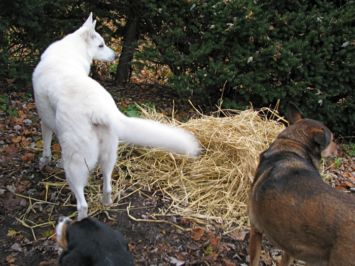 p.s.  The snowman’s posse forms a canine fence patrol.