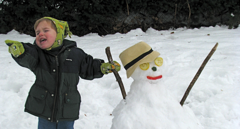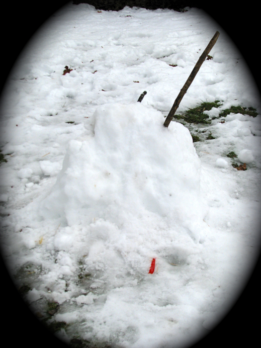 […] Devin’s second snowman (click to see his first), was constructed on Thursday, Feb. 18.  He has not stood up too well, having lost all of his […]