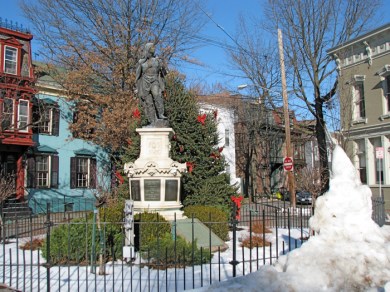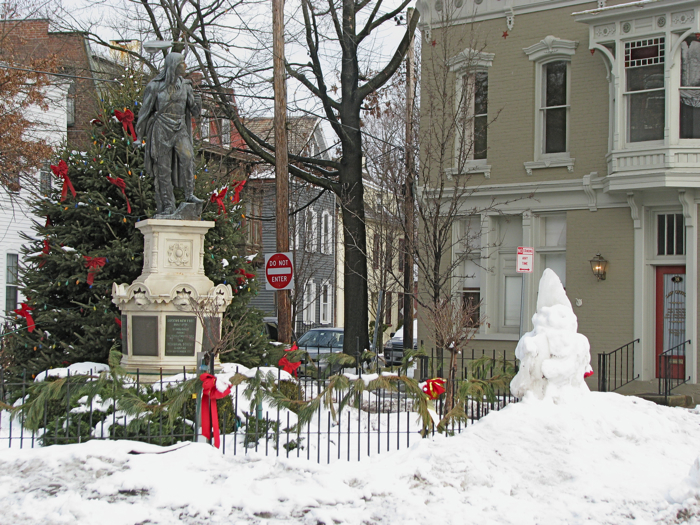 – “Gnoman” the Snow Gnome at Lawrence Circle – 18 Jan. 2010 – Lawrence Circle with visiting "Gnoman" - Schenectady Stockade - 16 Jan 2010