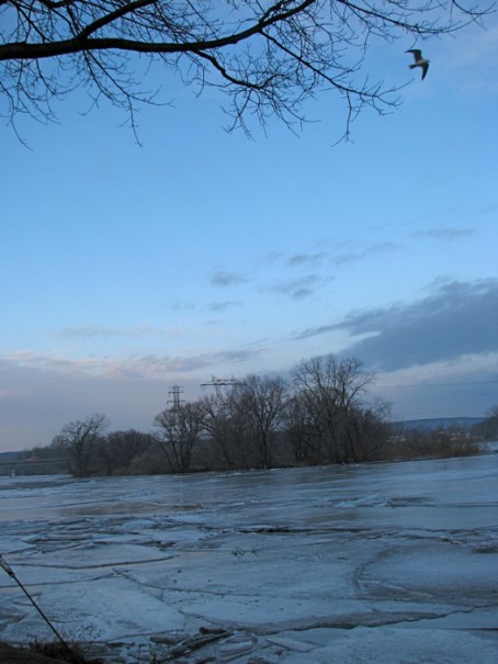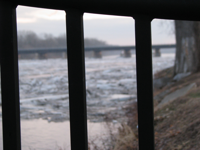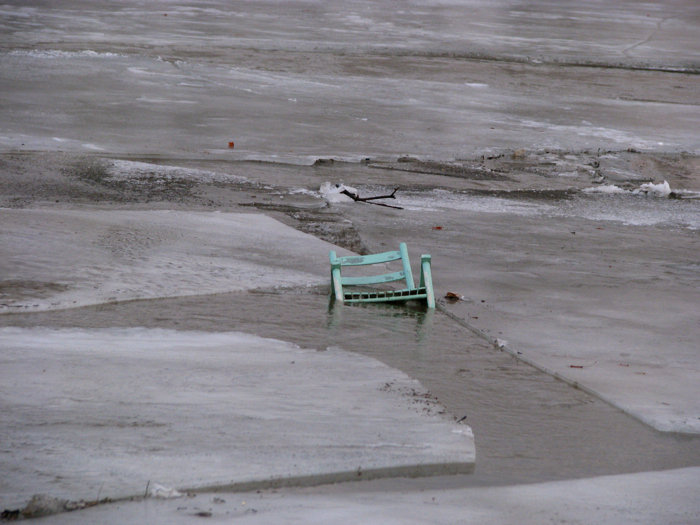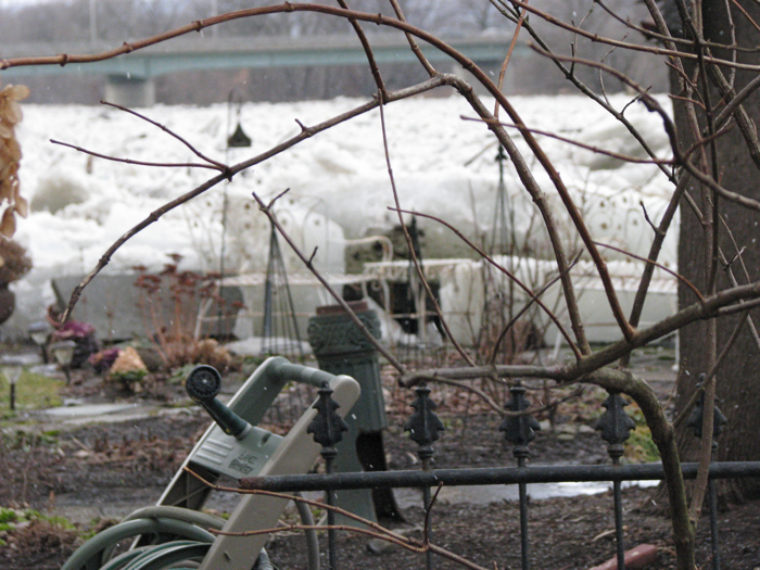 Finally, on my way back home after photographing the ice jam around noon yesterday, I saw this scene in the backyard of 2 Washington Ave. It sums up well the intrusive nature of those damn ice floes: