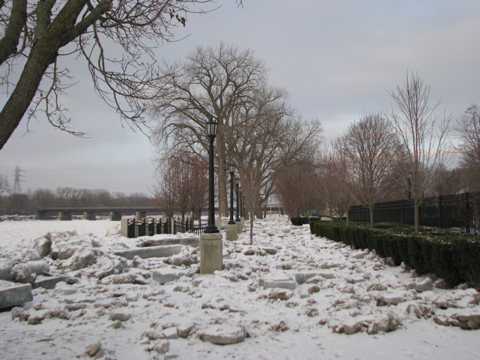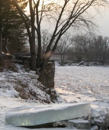 Pictures are far more eloquent than words, and I’m going to merely post some of my favorite shots, taken yesterday (Feb. 3, 2010) in the Park. [find more ice floe leftovers in this post from Cucumber Alley.]  As always, click on a photo for a larger version and scroll over it for a description.