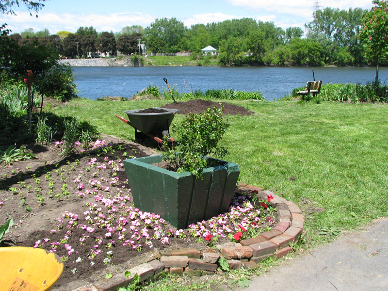 “Thanks to Bob, Sue, Linda, Carol, Bill, Fred, Greg, David, Mabel, Beverly, Marge, Susanne, Rob, Lydia, Dale, Mary, Jessica, Michelle, Lauren, Oren, Tim and his progeny and others from the community, and a huge thanks to the Union College Crew. Under a bright, cool, and blustery sky – a near perfect day — we had about 40 people turn out to help set up and plant the gardens on Washington at RiversidePark. For the first time, we got the whole thing done in one day including painting the planters. Many hands make light work! The Stockade Association provided sandwiches with everyone fully enjoyed.”