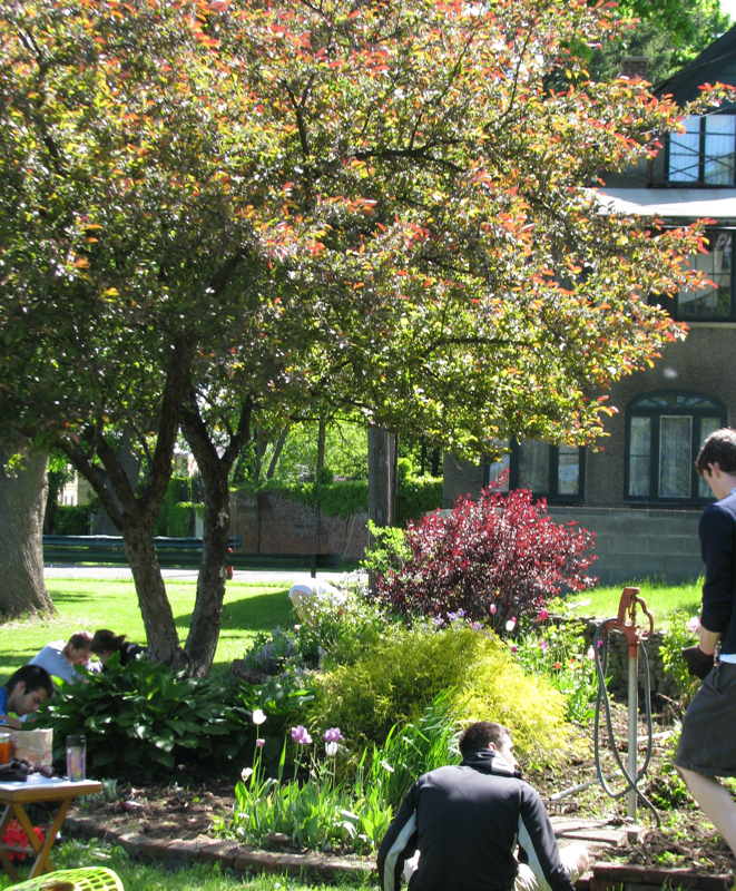 And Union College students — “neighbors” from the Union crew team — helped with weeding and preparation of the flower beds, before starting to plant assorted annuals: