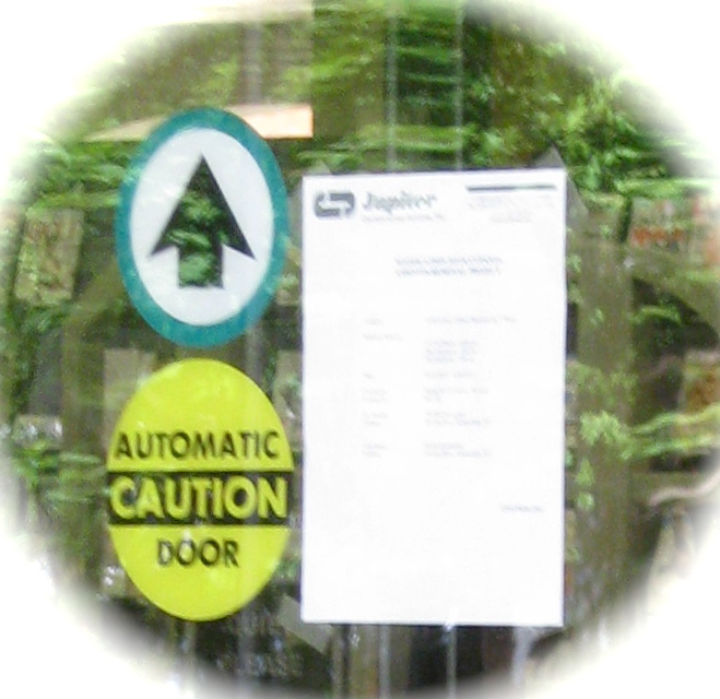 [T]he Notice moves to the left as soon as one approaches it. That’s because it’s attached to an automatic door that slides open when you get near it, and then slides back rather quickly once you pass through.