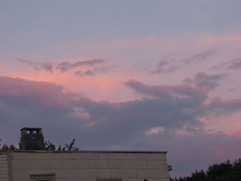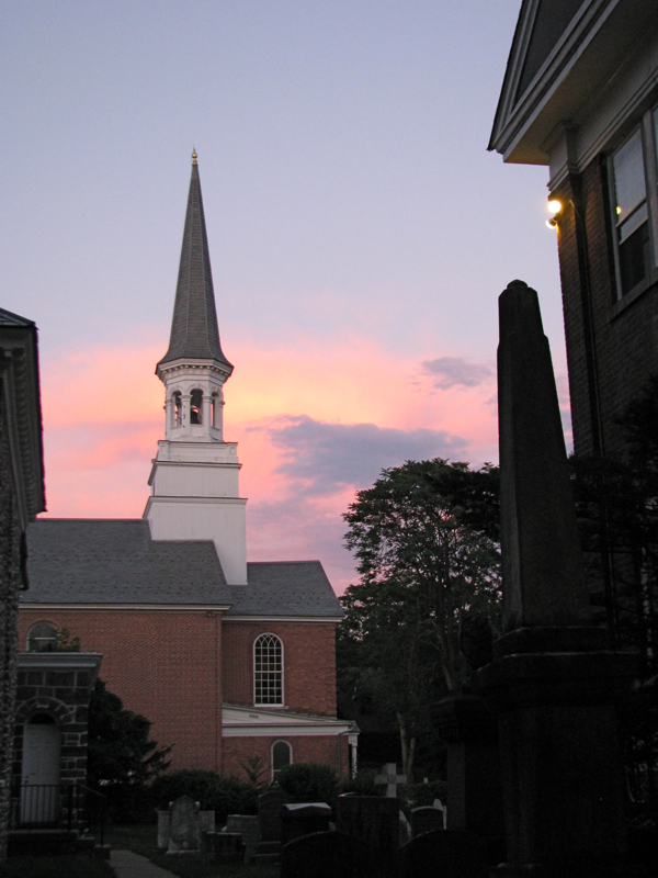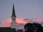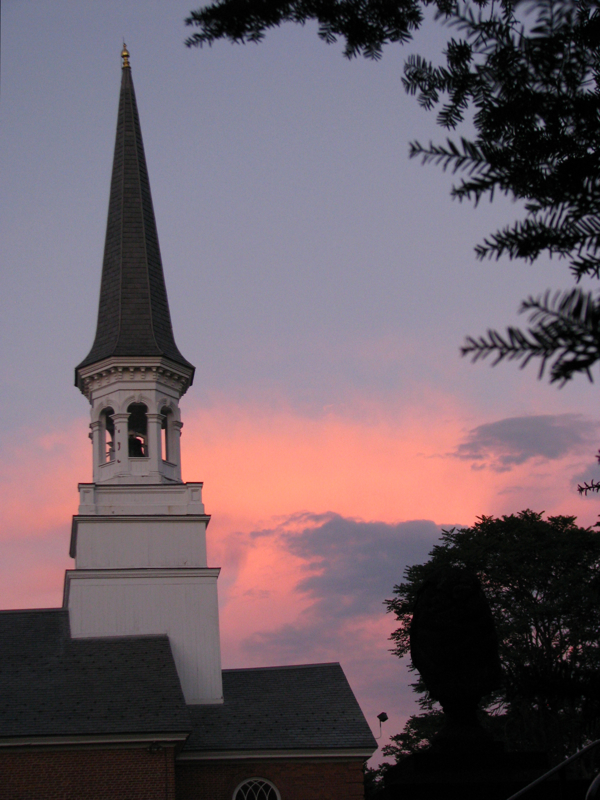 The result was an unusual (for me, at least) perspective on sunset focusing on the southeastern sky and featuring the simple yet lovely shape of the steeple on the 1st Presbyterian Church, which fronts on Union St. and has a parking lot on its north side that stretches to Green St. I would have loved to be on the roof of a two- or three- story building for a better view of the multi-colored sky and clouds, but had to make do from street level.