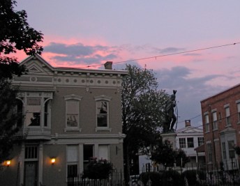 By the time I got to Riverside Park, it seemed that the eastern sky had a more dramatic sunset last night than did the western sky over the Mohawk River. I ended up concentrating on the scene from the end of Governor’s Lane: