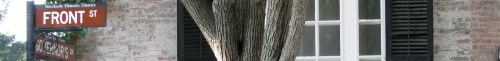 First, I looked at photos already in my iPhoto album and was not at all satisfied. Later, I took a very short stroll (in the 90+ degree heat) from Cucumber Alley to Lawrence Circle and snapped a few more. As you can see, it may take a sharper eye than mine, with a wider-angle camera lens, to do justice to the Stockade and the header of the Stockade Association.