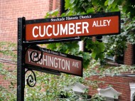 – new Historic District signs on Washington Ave. at Front St. and Cucumber Alley –