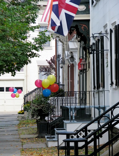 Walkabout 2010 shines » a 10 A.M. view on N. Church St. with balloons designating two houses on the tour of the 2010 Stockade Walkabout – 25Sept2010