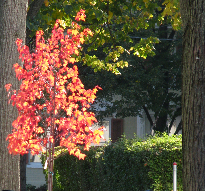 I’m not sure why one rather scrawny little tree has captured my fancy and given me so much pleasure. Here are some of my favorite shots of the young Stockade redhead, which Faddegon’s calls a Maple Autumn Flame.