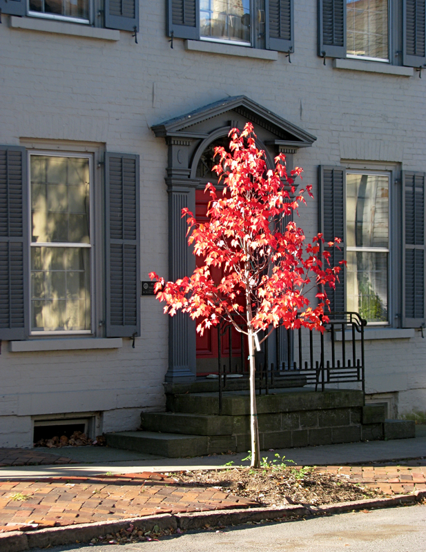 Yesterday morning, I decided to get acquainted with the deciduous enchantress, and to capture her with my camera before time, wind and rain diminished the autumnal beauty. So, I pointed my Canon down the block and to a short walk up Front Street.