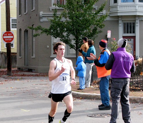 Stockade-athon 2010 visits Lawrence » Runner #10 [Thomas O’Grady of Latham, who finished the race in 9th place] at the Lawrence Circle – Stockade-athon 2010 – 07Nov2010