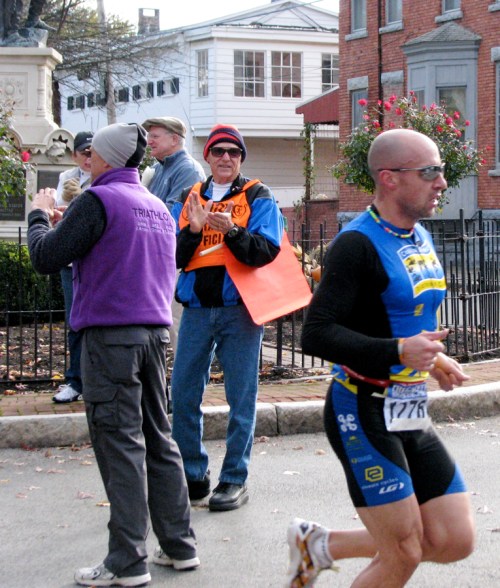 Stockade-athon 2010 visits Lawrence » Runner #1276 passes race officials leaving the Lawrence Circle – Stockade-athon 2010 – 07Nov2010