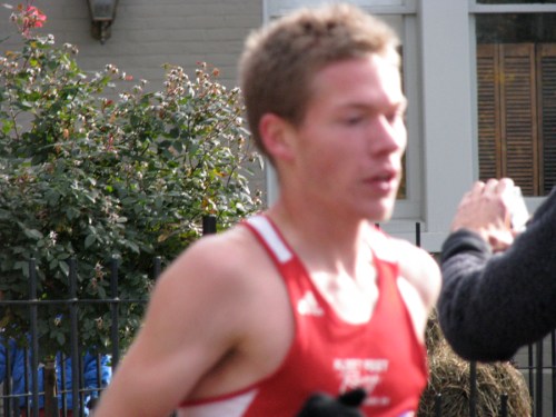 Stockade-athon 2010 visits Lawrence » Runner #4 reaches the Lawrence Circle – Stockade-athon 2010 – 07Nov2010