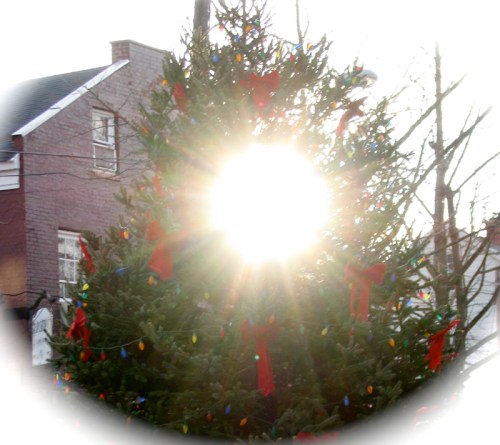 the 2010 Stockade Holiday Tree » afternoon sun shines through the 2010 Stockade Tree in the Lawrence Circle – Schenectady NY – 03Dec2010