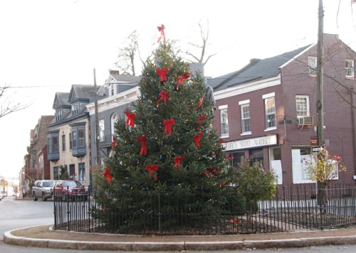 the 2010 Stockade Holiday Tree » the northern view of the Lawrence Circle with the 2010 Stockade Tree – Schenectady NY – 03Dec2010