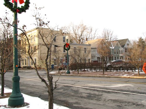 a row of residences on North College St. at Union St. as seen from the SW corner of Union and Erie Blvd.