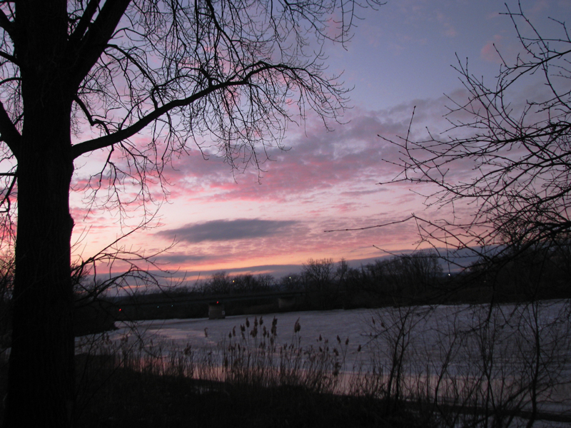 It’s been far too long since I’ve snapped a Stockade sunset along the Mohawk River. Last night, I saw lovely colors on the western horizon as the second sunset of 2011 was waning. Grabbing my camera, I rushed down Cucumber Alley and reminded myself how much I enjoy both Stockade sunsets and the stately naked limbs of our trees in winter.