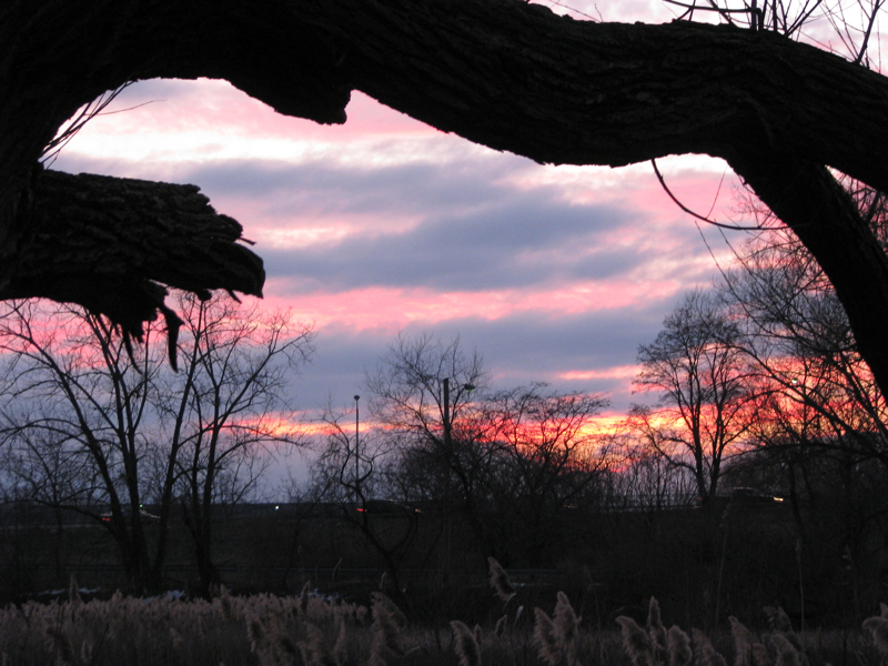 Pink, gray and orange sunset hues behind starkly outlined trunks and branches: a very nice way to start the New Year in the Stockade. You can see the evidence in this small gallery. All shots were taken at the end of Cucumber Alley, where the Binnekill creek empties into the Mohawk River: