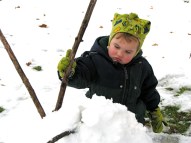 Just thirteen months ago, Devin was a two-year-old toddler, inspecting the remains of his very first snowman, in Riverside Park. Click for our 2010 Stockade Snowmen posting.
