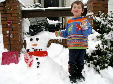 Ned and Devin were surprised to hear that I couldn’t find more Stockade snow-persons for my 2011 showcase. We all hope there will soon be other examples of snow art and wintry fun — and maybe even colorful sweaters by Hanna Andersson — to add to the collection. Please let me know of additional snowmen for our gallery, which will be updated as new snow-companions arrive in the neighborhood.