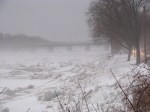 – ice jams and fog at Riverside Park (7 AM Friday March 11) –