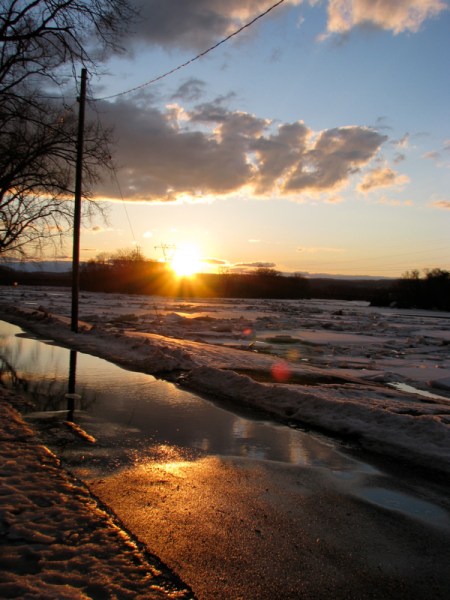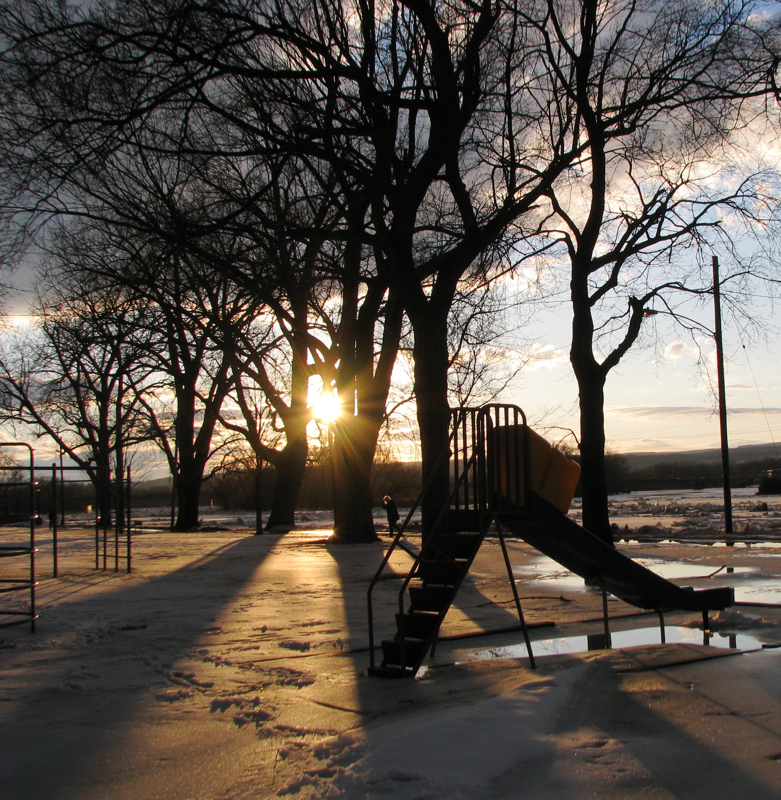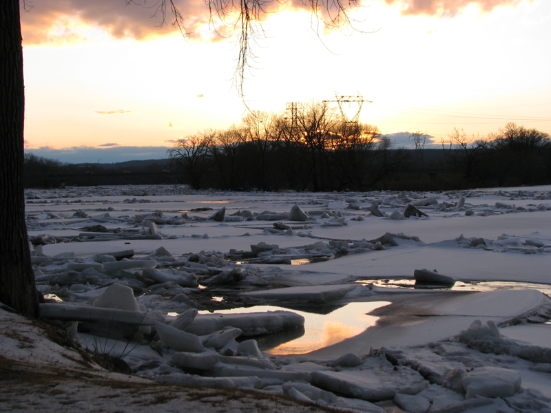 During this week of ice floes and rising waters along the Mohawk, some of my favorite images came as I was waiting impatiently last night (Friday) in Riverside Park for sunset to arrive, with its promise of pink and orange ice jams and snowmelt puddles. For me, the pre-sunset light proved more alluring than sunset itself.