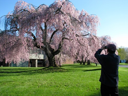peaceful cherry blossoms » Prof. Yu Chang photographs a blooming cherry blossom tree on the grounds of Congregation Gates of Heaven – Schenectady NY – 30Apr2011