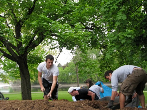 Riverside playground gets mulched for safety » ParkMulch14May11-crewdig1