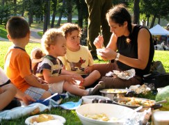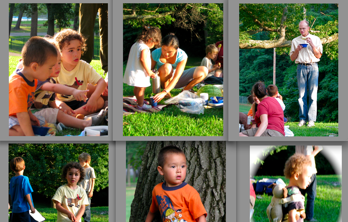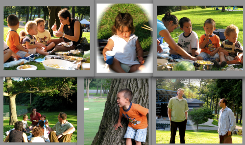 . . . Three Stockade families with pre-schoolers and toddlers got together on Thursday at Central Park for tennis lessons, a picnic, and kids’ music at Music Haven (with Ruth Pelham), and I tagged along. After a bit of extreme bocce on a hillside, I took a break from sampling the pot luck meal to snap a few pictures, aided by some great sunlight angles. Click on the collages or the above photos for a larger version.