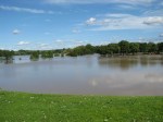 As a Stockade evacuee from Hurricane Irene, I woke up in Scotia this refreshing, sunny morning and headed over to see how the north side of the Mohawk was handling the Irene flood waters. As you can see from this Slideshow, Schonowee Ave. was flooded by 9:30 AM, Jumpin’ Jack’s had more water than any of the onlookers could recall, and Collin’s Lake and the Mohawk River took over most of Collins Park. Most photos were taken between 9:30 AM and 10:30 AM, while I mingled with a lot of friendly people, many of whom were snapping pictures; others were shot around 4 PM a couple hours past the River’s cresting.