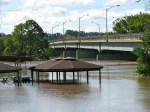 - Western Gateway Bridge seen from flooded Jumpin’ Jack’s lot