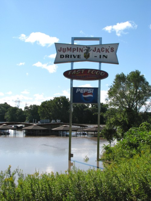 flooding and sunshine in Scotia after Irene » Jumpin’ Jack’s sign surrounded by Irene flood waters as seen from Schonowee Ave. at Mohawk Ave. – Scotia NY – 29Aug2011