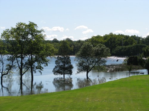 Collins Lake overflows near Collins St.