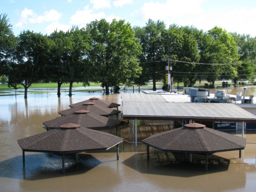 flooding and sunshine in Scotia after Irene » Jumpin’ Jack’s seen from the Western Gateway Bridge surrounded by Irene flood waters – Scotia NY – Mohawk River – 29Aug2011