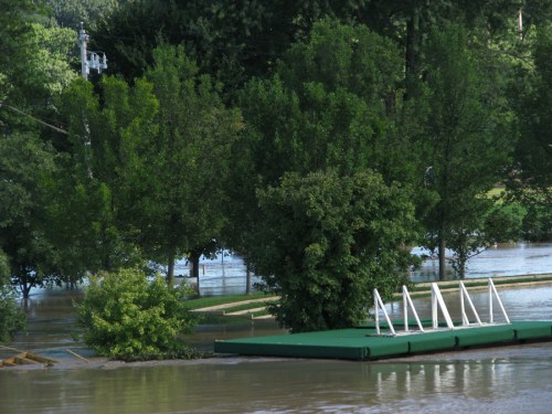 flooding and sunshine in Scotia after Irene » Hurricane Irene flood waters surround a ski dock along the Mohawk River in Scotia NY – 29Aug2011