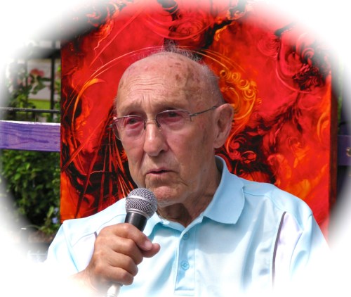 showing off artfully in the Stockade » honoree, artist, and former Mayor of Schenectady Frank Duci addressing the crowd during the Award ceremony – 60th Annual Stockade Villagers’ Outdoor Art Show – Schenectady NY – 10Sep2011