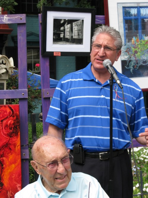 showing off artfully in the Stockade » Assemblyman Jim Tedisco praises the resilence of Frank Duci, the Stockade and American – 60th Annual Stockade Villagers’ Outdoor Art Show – 10Sep2011
