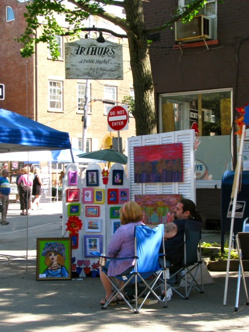 showing off artfully in the Stockade » art, light and shadows outside Arthur’s Market – 60th Annual Stockade Villagers’ Outdoor Art Show – Schenectady NY – 10Sep2011
