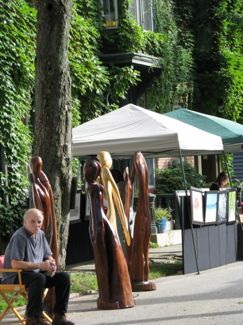 showing off artfully in the Stockade » Herold Gobmetrsky’s sculpture and other exhibits on Front St. east of Lawrence Circle – 60th Annual Stockade Villagers’ Outdoor Art Show – 10Sep2011